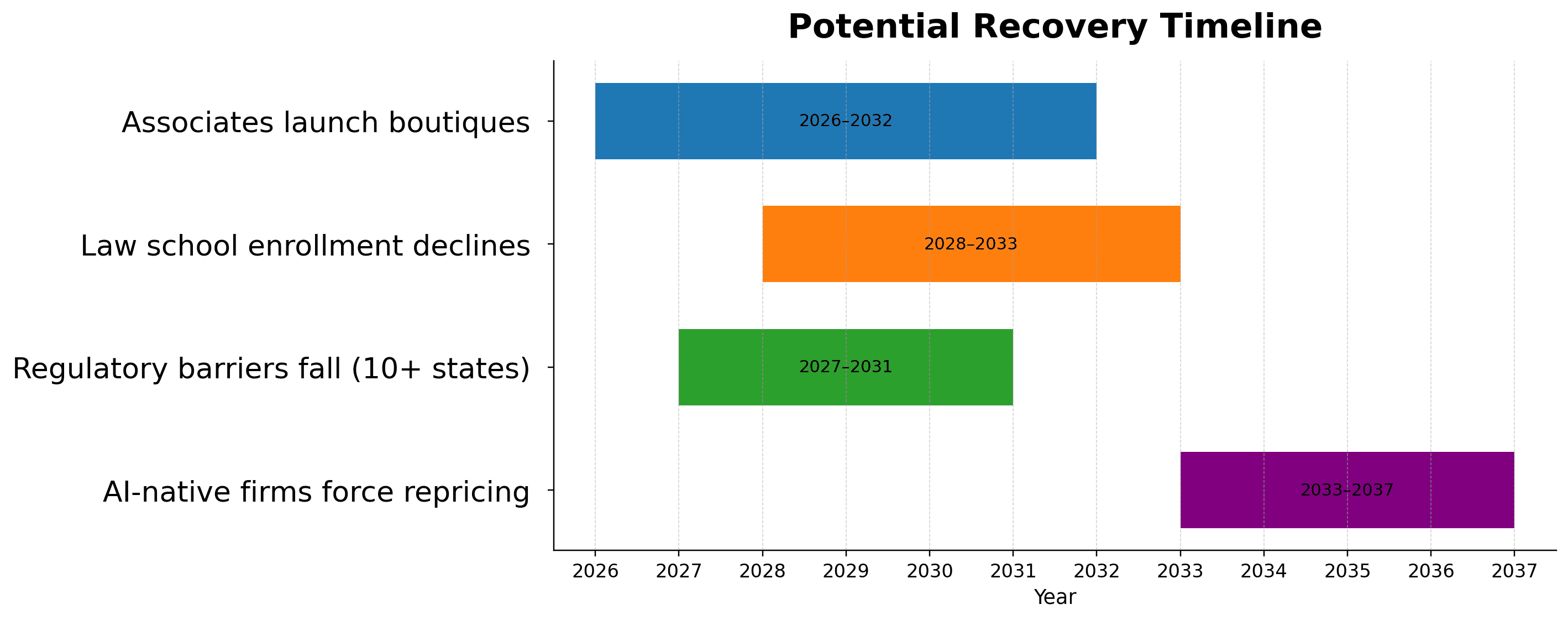 We’ll also see a surplus of credentialed lawyers competing for shrinking associate positions, flooding into solo practice, undercutting each other to survive. That surplus leads to a buyer’s market.